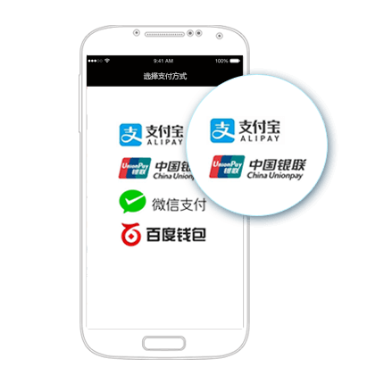 鼎力相助聚合支付平台,为iOS/Android原生/H5 App提供支付解决方案:支持微信支付、支付宝支付、银联手机支付、百度钱包等。